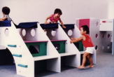 チャイルズハートの公園遊具は、アンジュレ/キュピドンの幼児用家具・乗用玩具からさらに発展させて、環境遊具というべき内容になっています。 私どもの創作活動をつらぬく遊具ポリシーには、「関与しすぎて、子どもをつぶしてはならない」という批判と、親の愛の表現としての玩具提供という助言が、込められています。 |