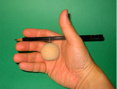 持ち方補助具「きまる君」を使うと正しい鉛筆の持ち方が体得できます。